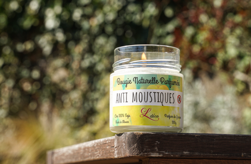 bougie anti moustiques naturelle et efficace ! Fabriquées à partir d'une combinaison de cire végétale et infusées d'huiles essentielles de citronnelle et de géranium, ces